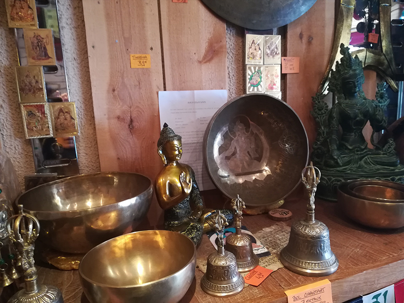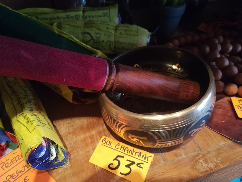 Dans la ville d’Épinal, dans les Vosges, en Lorraine, Nathalie, de la boutique Namasté, ramène de ses voyages des bols tibétains authentiques, depuis plus de 20 ans. Comme tous les objets de sa boutique, elle sélectionne elle-même des bols chantants sur place, dans un quartier de réfugiés tibétain de New Dehli.